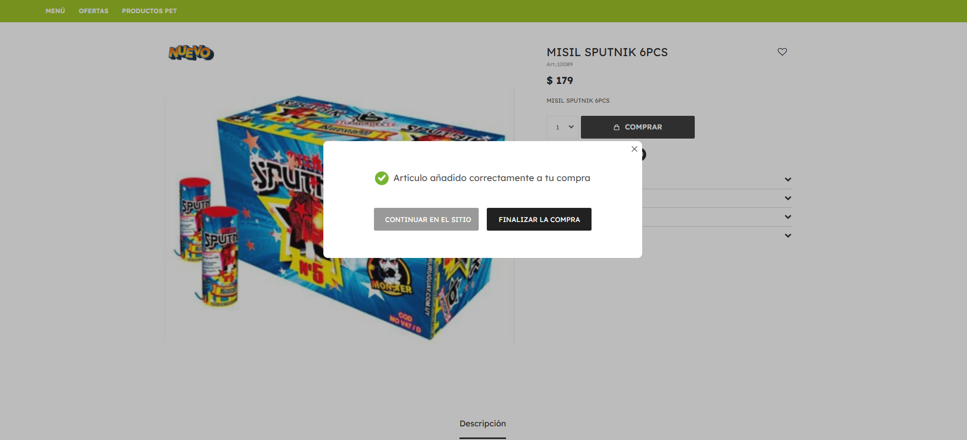4- Click sobre el botón “Comprar” para realizar la compra.
