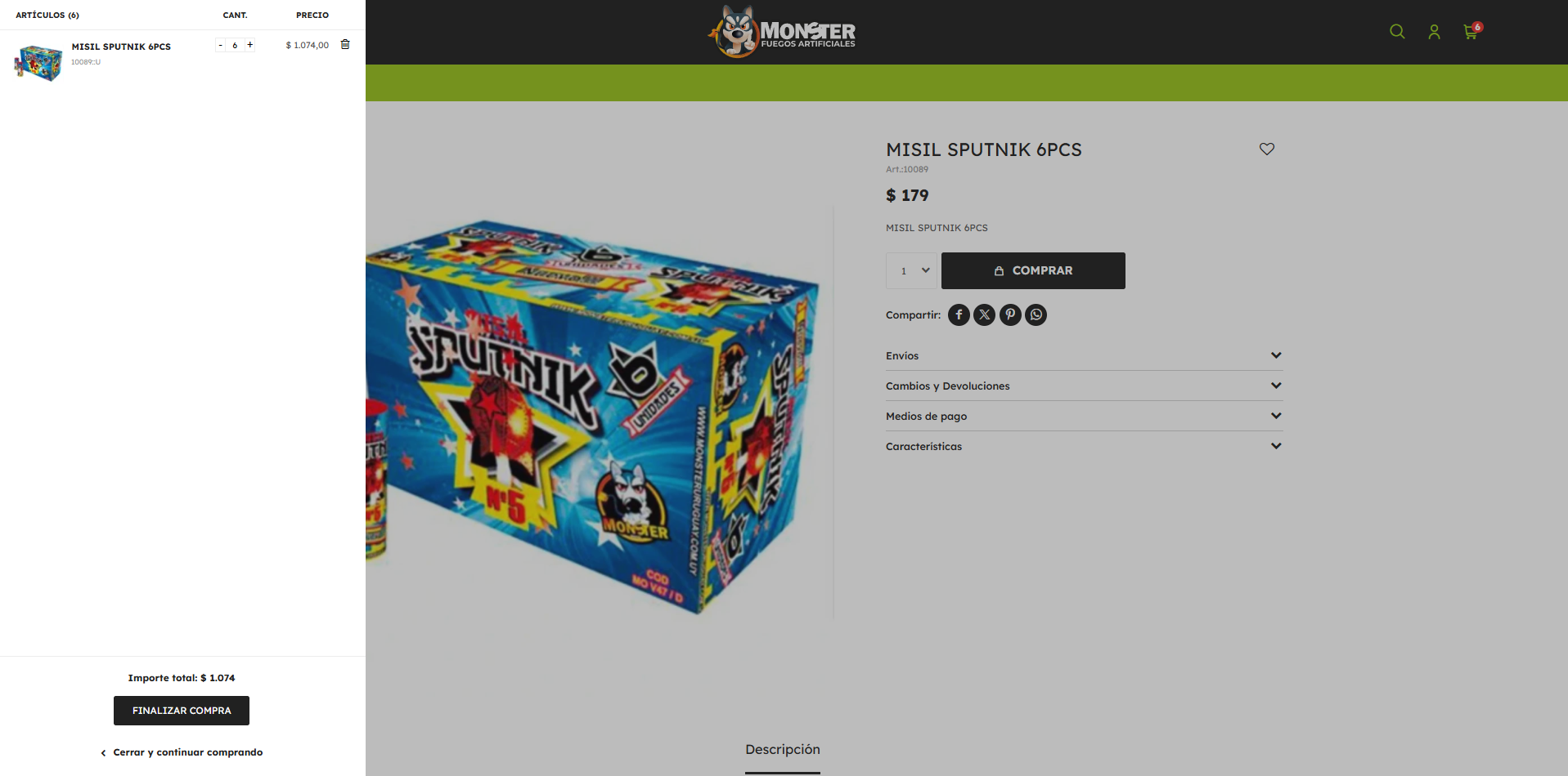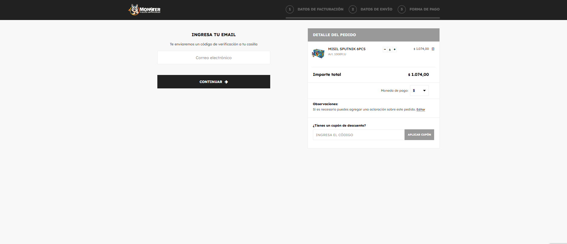 8- Ingrese su correo electrónico para registrarse como usuario de Monster fuegos artificiales, y estará a un paso de poder concretar su compra.